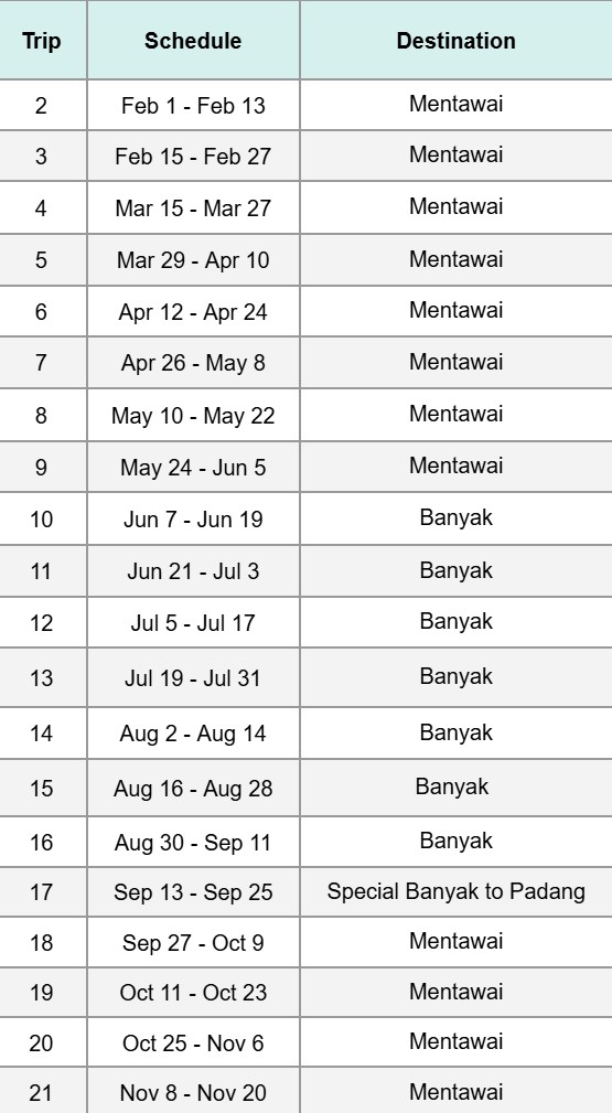 Uma vez em Lahewa, você não precisa se preocupar com mais nada. Nossa equipe irá recebê-lo e levá-lo ao barco em uma van climatizada. O mesmo se aplica para o trajeto de volta do barco para o Aeroporto.